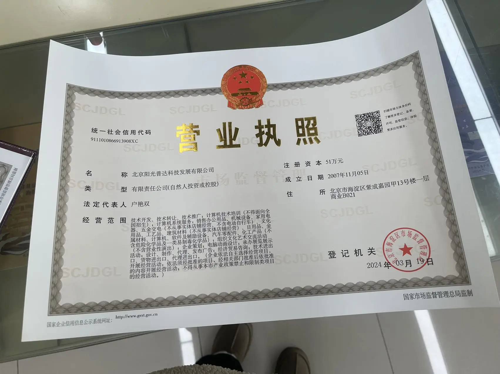 Legal Representative : Hu Yan Shuang